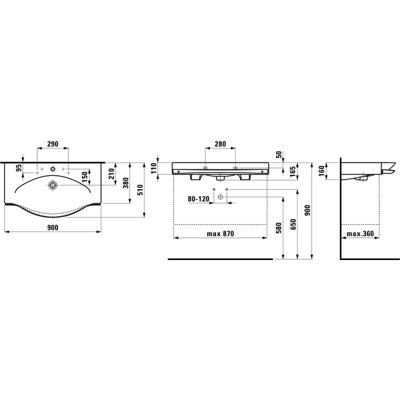 Praustuvas Laufen Palace New 90, 900x510mm, baldinis