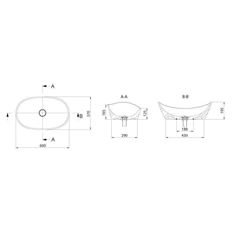 Praustuvas, Pastatomas, Matmenys 600x370x195mm, Baltos spalvos, Iš akmens masės, Lengvai valomas ir montuojamas, Be persipylimo, Be skylės maišytuvui, 10 metų garantija