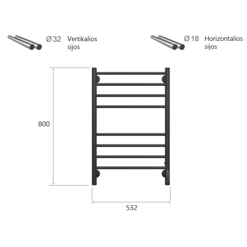 Elektrinis rankšluosčių džiovintuvas Terminus Aurora P8, juodas