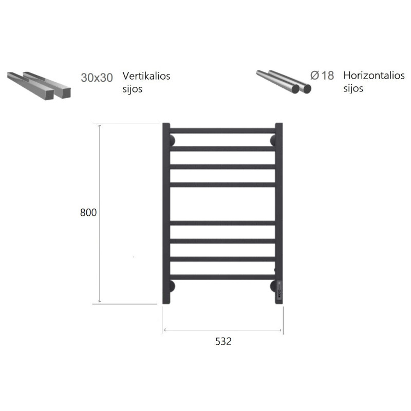 Elektrinis rankšluosčių džiovintuvas Terminus Sicilia P8, juodas