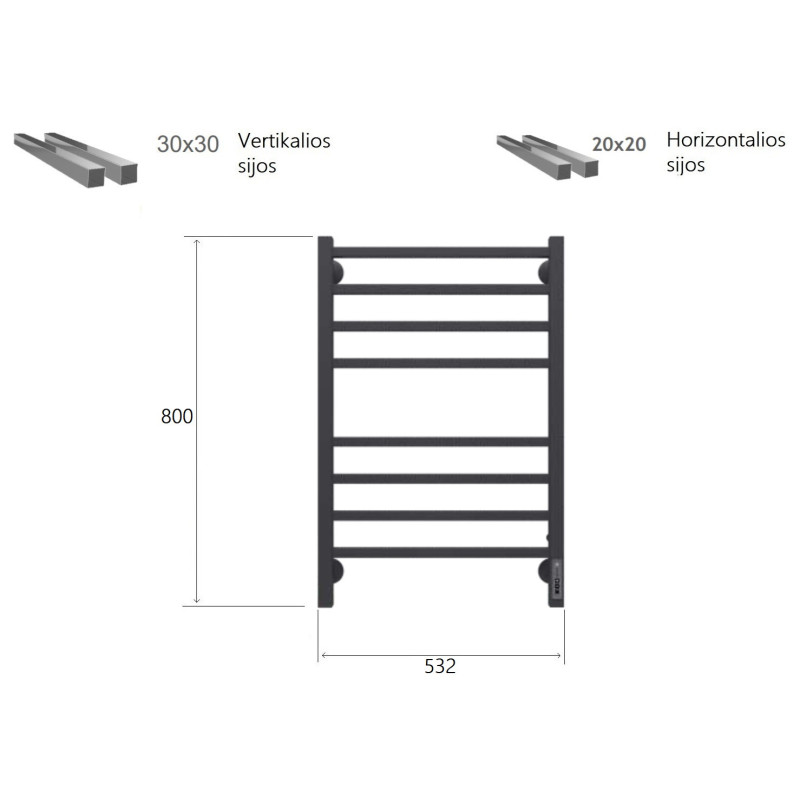Elektrinis rankšluosčių džiovintuvas Terminus Vatikan P8, juodas