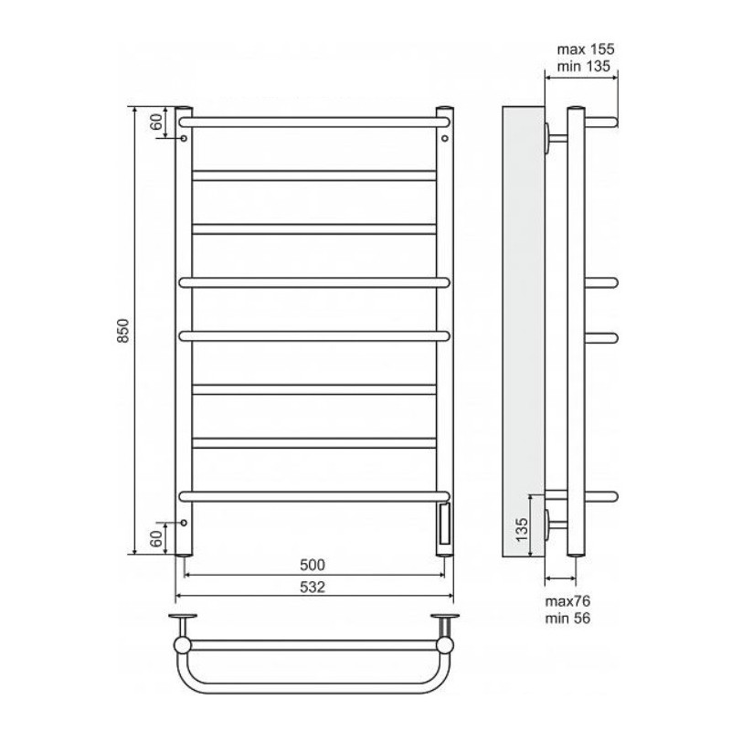 Elektrinis nerūdijančio plieno rankšluosčių džiovintuvas - kopėtėlės Terminus Euromix C8 - puikus pasirinkimas norintiems greitai išsidžiovinti drėgnus rankšluosčius ar drabužius neturint didelio vonios kambario. Džiovintuvas neužima daug vietos vonioje. Džiovintuvą sudaro 8 skersinės sijos. Terminus Euromix C8 elektrinis džiovintuvas yra su elektriniu tenu ir termoreguliatoriumi, todėl Jums nereikės ieškoti jų papildomai. Rankšluosčių džiovintuvas - kopėtėlės Terminus Euromix C8 - puikus variantas norint sutaupyti bei efektyviai šildyti/džiovinti drabužius ar rankšluosčius. Elektrinis rankšluosčių džiovintuvas gali būti naudojamas kaip papildoma šildymo įranga. Termoreguliatorius palaiko nustatytą temperatūrą, o tai leidžia sutaupyti elektros energiją. Suteikiama 2 metų garantija.