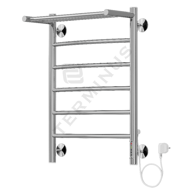 Elektrinis nerūdijančio plieno rankšluosčių džiovintuvas - kopėtėlės Terminus Classic C6 (su lentyna) - puikus pasirinkimas norintiems greitai išsidžiovinti drėgnus rankšluosčius ar drabužius neturint didelio vonios kambario. Džiovintuvas neužima daug vietos vonioje. Džiovintuvą sudaro 6 skersinės sijos. Terminus Classic C6 elektrinis džiovintuvas yra su elektriniu tenu ir termoreguliatoriumi, todėl Jums nereikės ieškoti jų papildomai. Rankšluosčių džiovintuvas - kopėtėlės Terminus Classic C6 - puikus variantas norint sutaupyti bei efektyviai šildyti/džiovinti drabužius ar rankšluosčius. Elektrinis rankšluosčių džiovintuvas gali būti naudojamas kaip papildoma šildymo įranga. Termoreguliatorius palaiko nustatytą temperatūrą, o tai leidžia sutaupyti elektros energiją. Suteikiama 2 metų garantija.