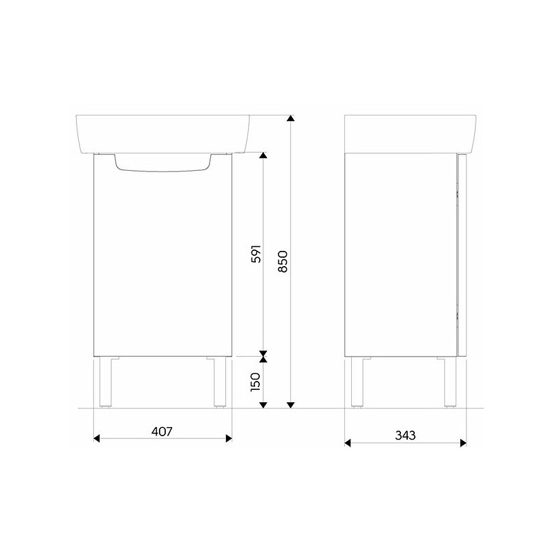 Spintelė praustuvui, Matmenys - 407x591x343 mm, Baltos spalvos, Blizgi, Durelės su Soft-Close funkcija tyliam uždarymui, 1 lentynėlė, Svoris - 10 kg, Su montavimo komplektu, 2 metų garantija