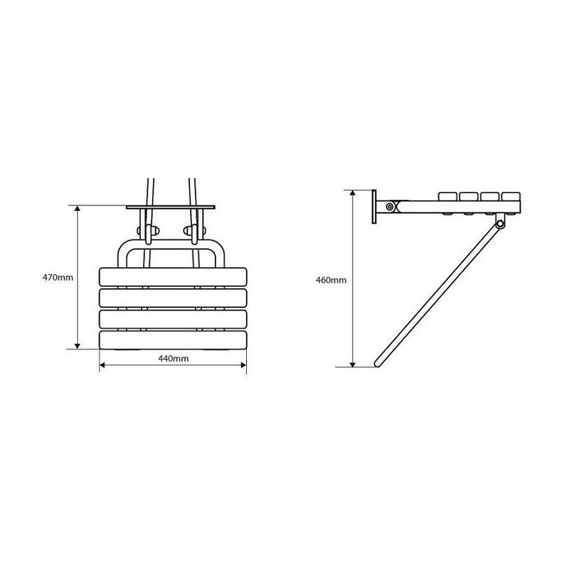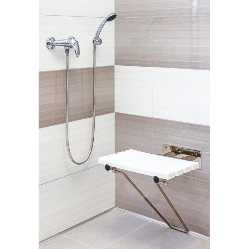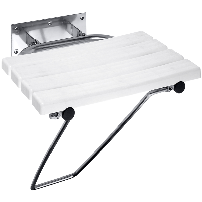 Dušo kėdutė, Baltos spalvos, Su atlenkiama atrama, Montuojama prie sienos, Matmenys(PxAxG) - 440x460x450 mm, Svoris - 3.79 kg, Iš nerūdijančio plieno, 2 metų garantija