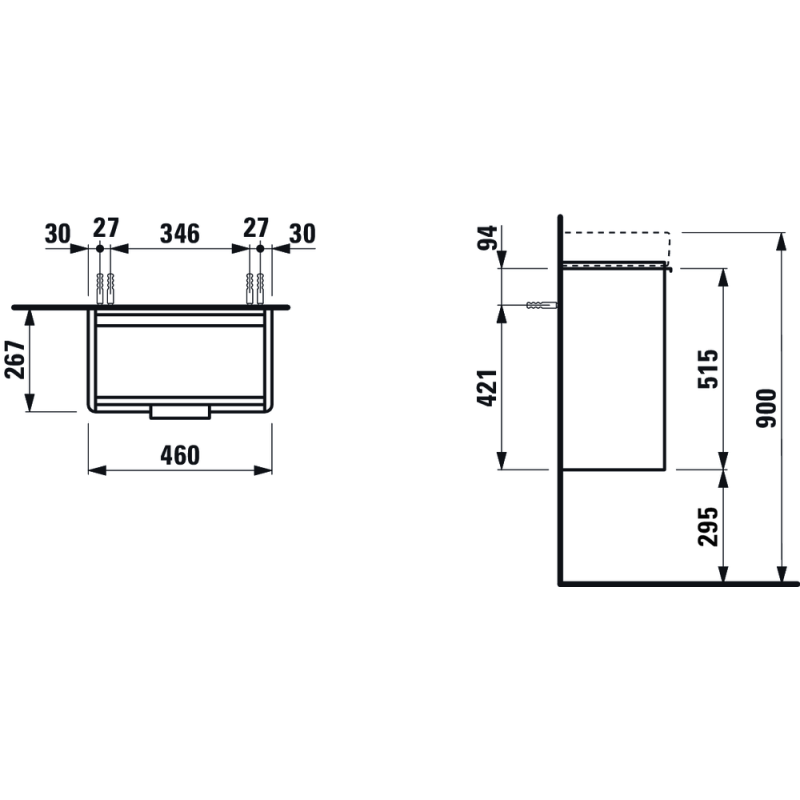 Spintelė praustuvui, Matmenys(PxAxG) - 265x530x470 mm, Blizgios baltos spalvos, Su durelėmis, Tinka praustuvui Laufen 815954, 2 metų garantija