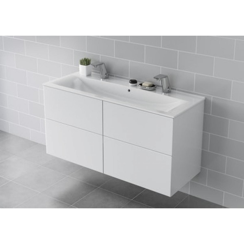 Spintelė praustuvui Ido Elegant, baltos spalvos. Matmenys(PxAxG) - 1200x600x460 mm. Šiuolaikinio dizaino, šviesi spintelė tiks prie įvairaus vonios interjero. Spintelė yra su 4 stalčiais, itin talpi, todėl galėsite patogiai susidėti įvairius vonios ir dušo reikmenis. Praustuvo spintelė Ido Elegant yra atspari drėgmei, pagaminta iš suspaustų trijų sluoksnių medžio drožlių plokščių su priekine dalimi iš vidutinio tankio medienos plaušų plokščių. Suteikiama 2 metų garantija.
