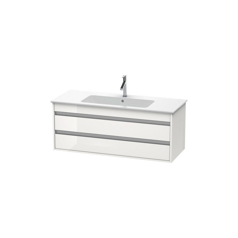 Spintelė praustuvui Duravit Ketho, blizgios baltos spalvos. Matmenys - 1200x475 mm. Šiuolaikinio dizaino, šviesi spintelė tiks prie įvairaus vonios interjero. Spintelė yra su 2 stalčiais, todėl galėsite patogiai susidėti įvairius vonios reikmenis, kurių nesimatys vonios kambaryje. Tinka su praustuvu Duravit Starck (Duravit 233612/236112). Suteikiama 5 metų garantija.
