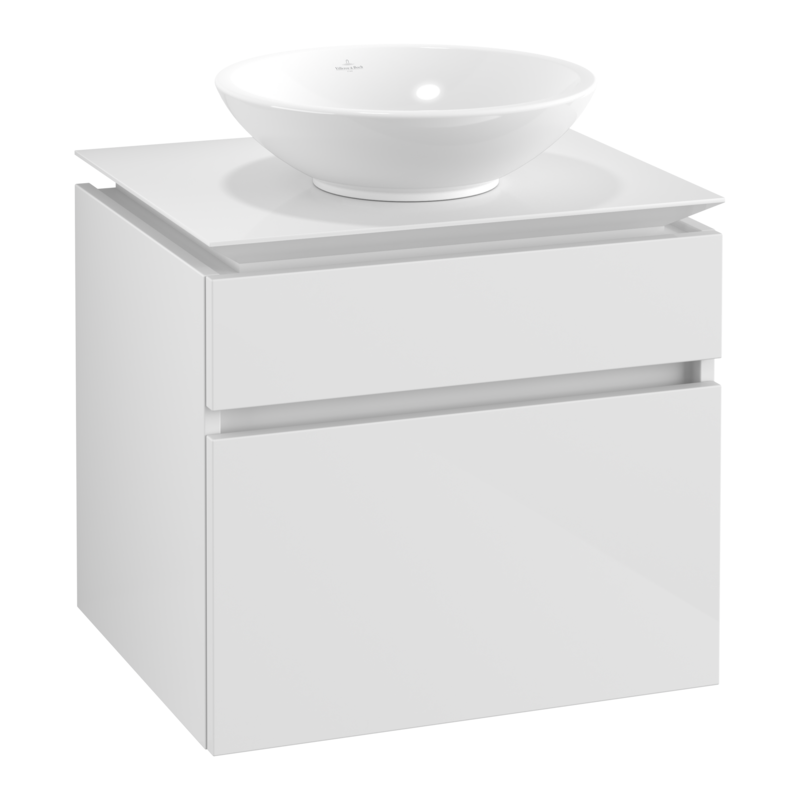 Spintelė praustuvui Villeroy&Boch Legato, blizgios baltos spalvos. Matmenys(PxAxG) - 600x550x500 mm. Šiuolaikinio dizaino, šviesi spintelė tiks prie įvairaus vonios interjero. Spintelė yra su 2 stalčiais, talpi, todėl galėsite patogiai susidėti įvairius vonios reikmenis, kurių nesimatys vonios kambaryje. Stalčiai su "SoftClose" funkcija, kuri užtikrina švelnų ir tylų užsidarymą. Spintelė praustuvui Villeroy&Boch Legato pagaminta iš vidutinio tankio medienos plaušų plokščių. Komplektuojama su tvirtinimo elementais. Suteikiama 2 metų garantija.