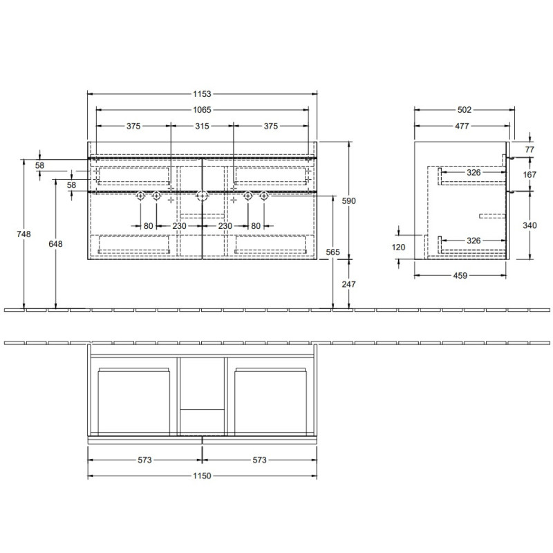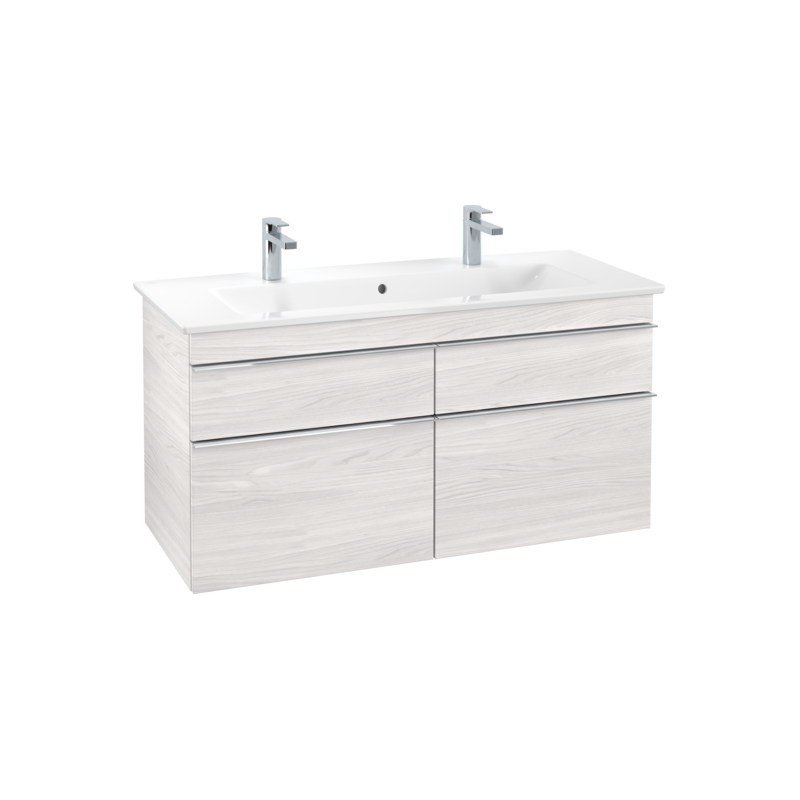 Spintelė praustuvui Villeroy&Boch Venticello, balinto medžio spalvos. Matmenys(PxAxG) - 1153x590x477 mm. Šiuolaikinio dizaino, šviesi spintelė su blizgiomis chromuotomis rankenomis tiks prie įvairaus vonios interjero. Spintelė yra su 4 stalčiais, itin talpi, todėl galėsite patogiai susidėti įvairius vonios ir dušo reikmenis. Stalčiai su "SoftClose" funkcija, kuri užtikrins švelnų ir lėtą stalčių užsidarymą. Praustuvo spintelė Villeroy&Boch Venticello yra atspari drėgmei, pagaminta iš vidutinio tankio medienos plaušų plokščių. Komplektuojama su tvirtinimo priedais. Suteikiama 2 metų garantija.