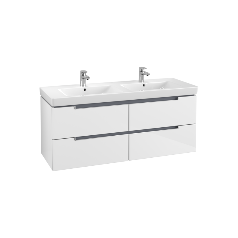Spintelė praustuvui Villeroy&Boch Subway 2.0, blizgios baltos spalvos. Matmenys(PxAxG) - 1287x520x449 mm. Šiuolaikinio dizaino, šviesi spintelė tiks prie įvairaus vonios interjero. Spintelė yra su 4 stalčiais, itin talpi, todėl galėsite patogiai susidėti įvairius vonios ir dušo reikmenis. Stalčiai su "SoftClose" funkcija, kuri užtikrins švelnų ir lėtą stalčių užsidarymą. Praustuvo spintelė Villeroy&Boch Subway 2.0 yra atspari drėgmei, pagaminta iš vidutinio tankio medienos plaušų plokščių. Komplektuojama su tvirtinimo priedais. Suteikiama 2 metų garantija.