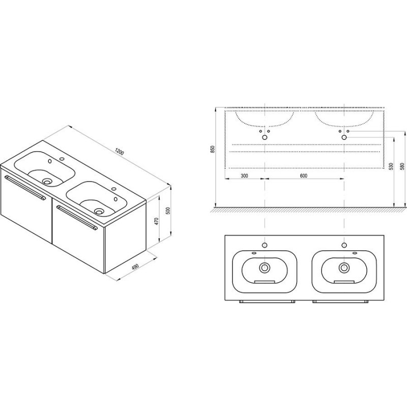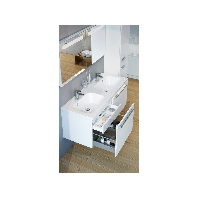 Spintelė praustuvui, Matmenys(PxAxG) - 120x47x49 cm, Baltos spalvos, Su 2 stalčiais, Su montavimo elementais, Tinka Ravak Formy praustuvui, 5 metų garantija