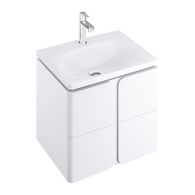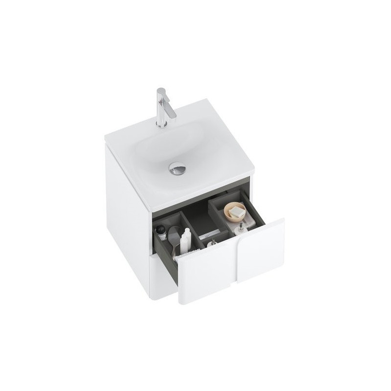 Pakabinama spintelė, Matmenys(PxAxG) - 50x54x46.5 cm, Baltos spalvos, Su 2 stalčiais, Stalčiai su grįžimo į vietą funkcija, Tinka Ravak Balance 500 praustuvui, Pagaminta iš mpregnuotos plokštės MFPB ir MDF, 5 metų garantija