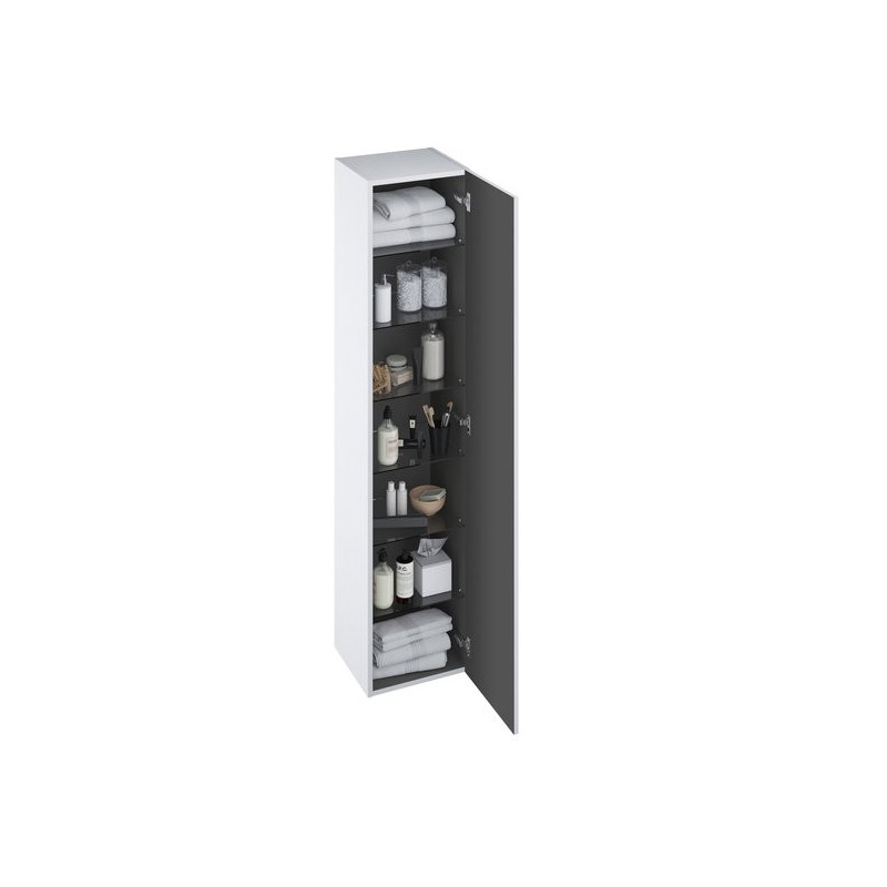 Aukšta spintelė, Baltos spalvos durelės, Baltos spalvos korpusas, Klasikinis dizainas, Daug vietos vonios reikmenims, Medžiaga - impregnuota MFPB ir MDF, Komplektuojama su tvirtinimo priedais, Matmenys(PxAxG) - 350x1600x165 mm, 5 metų garantija