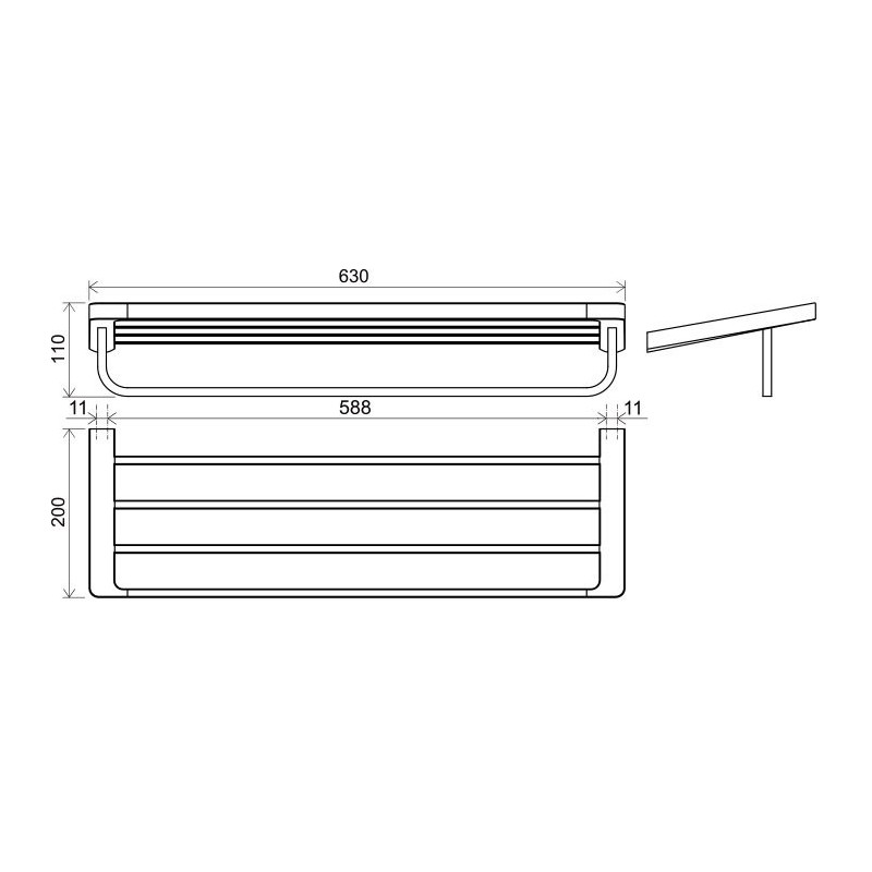 Rankšluosčių laikiklis, Su lentynėle, Juodos spalvos, Matmenys(PxAxG) - 630x110x200 mm, 5 metų garantija