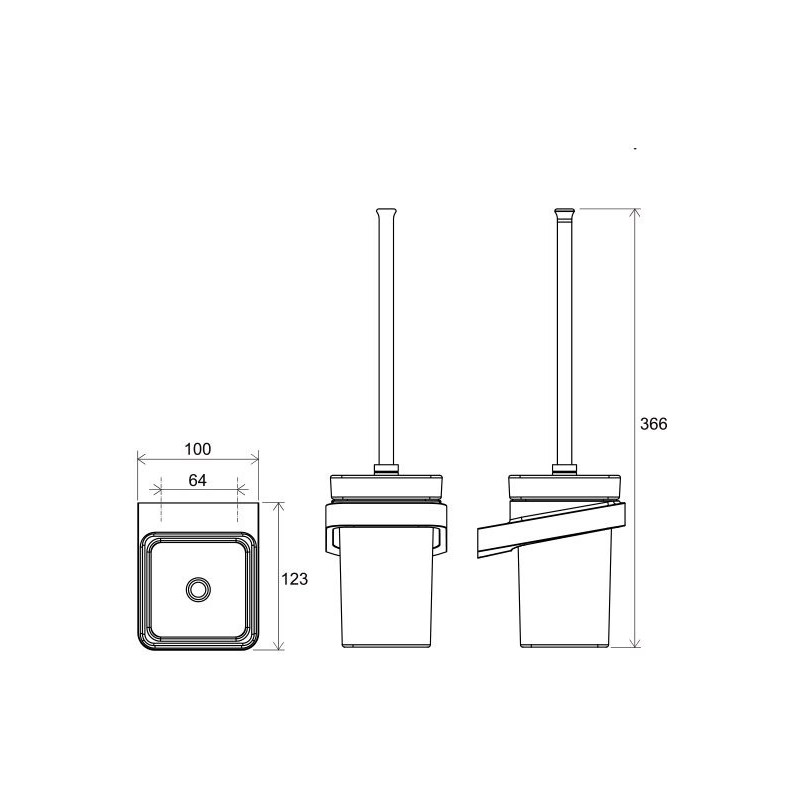 Tualeto šepetys su laikikliu ir indeliu, Juodos spalvos, Matmenys(PxAxG) - 100x366x123 mm, 5 metų garantija
