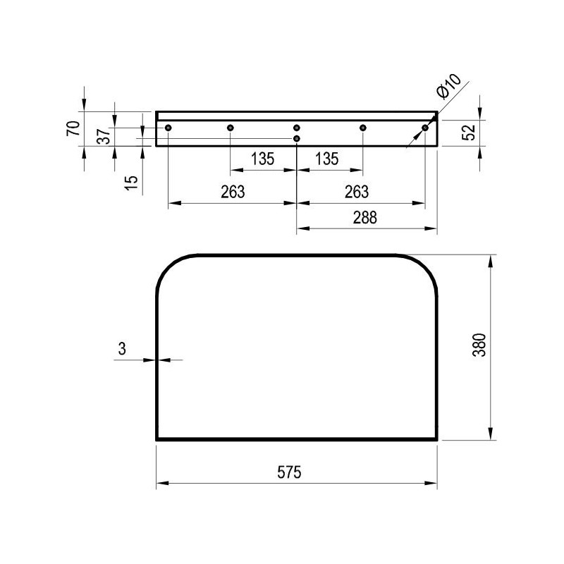 - Matmenys(PxAxG) - 575x70x380 mm