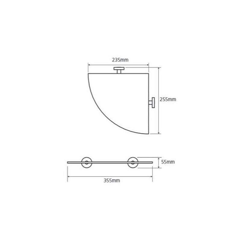 Kampinė lentynėlė, Stiklinė, Matmenys(PxAxG) 255x55x255mm, Žalvariniai chromuoti laikikliai, 2 metų garantija
