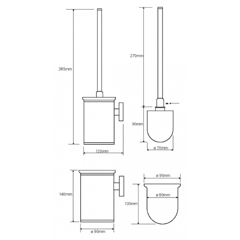 WC šepečio laikiklis, Pakabinamas, Baltos spalvos, Matmenys(PxAxG) 90x385x120mm, Žalvarinis, Chromuotas, 2 metų garantija