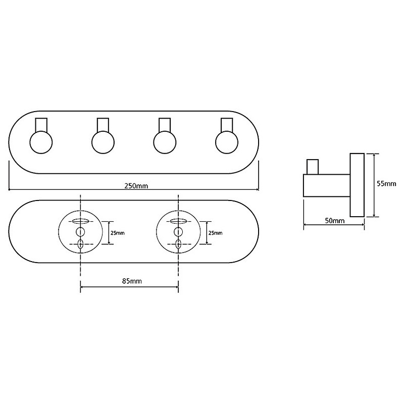 Pakaba, Su 4 kabliukais, Matmenys(PxAxG) 250x55x50mm, Žalvarinė, Chromuota, 2 metų garantija