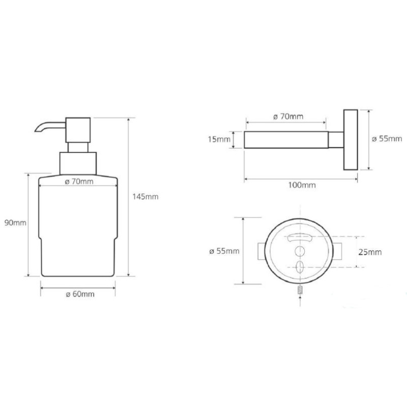 Muilo dozatorius, Pakabinamas, Stiklinis, Matmenys(PxAxG) 75x145x100mm, Talpa 200ml, Žalvarinis chromuotas laikiklis, 2 metų garantija