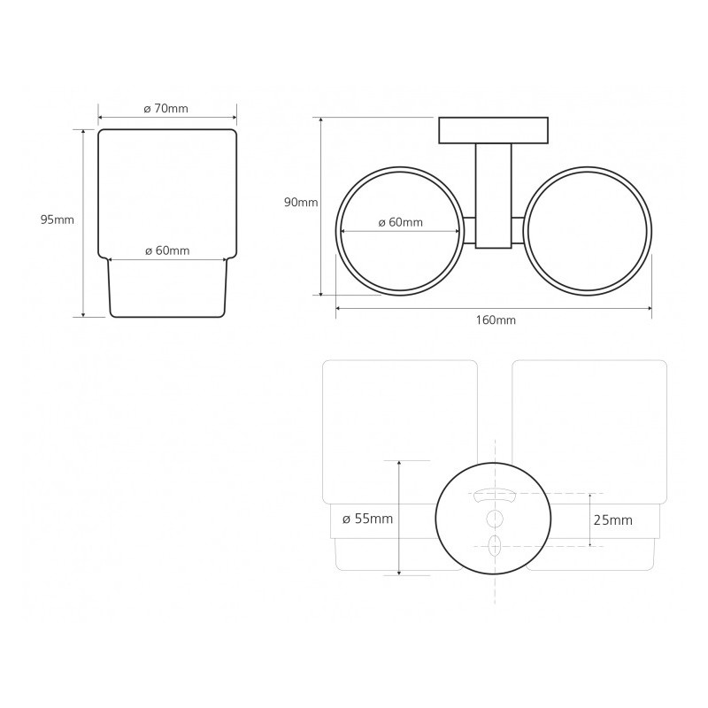 Dvigubas stiklinių laikiklis, Matmenys(PxAxG) 160x95x90mm, Žalvarinis, Chromuotas, 2 metų garantija
