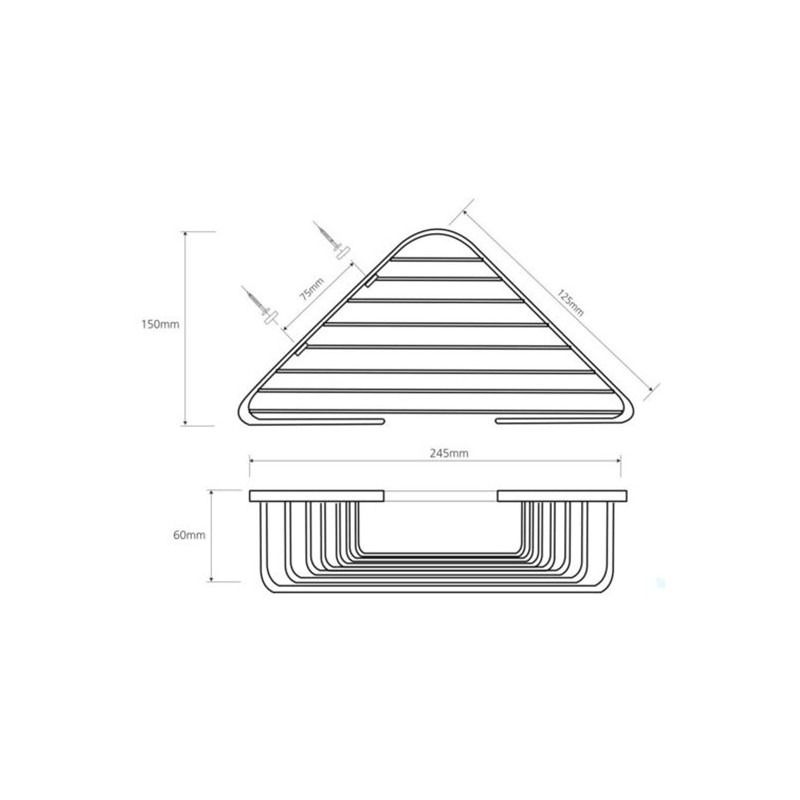 Trikampė kampinė muilinė, Matmenys(PxAxG) 245x60x150mm, Žalvarinė, Chromuota, 2 metų garantija