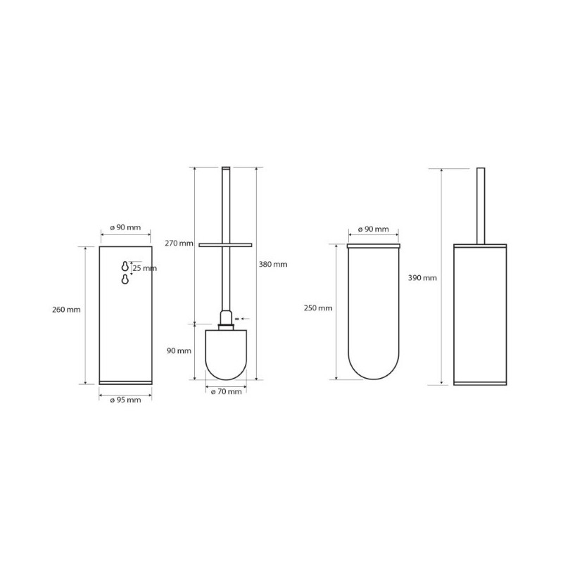 WC šepečio laikiklis, Pastatomas/pakabinamas, Juodos spalvos, Matmenys(PxAxG) 95x380x105mm, Žalvarinis, 2 metų garantija