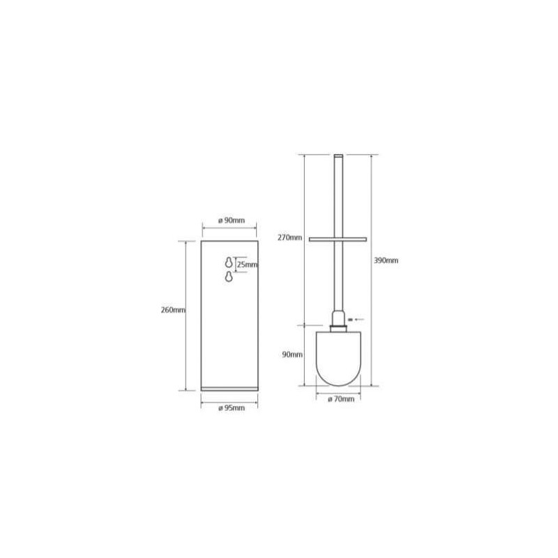 WC šepečio laikiklis, Pastatomas/pakabinamas, Matmenys(PxAxG) 95x390x105mm, Nerūdijančio plieno, Poliruotas, Su baltos spalvos šepečiu, 2 metų garantija