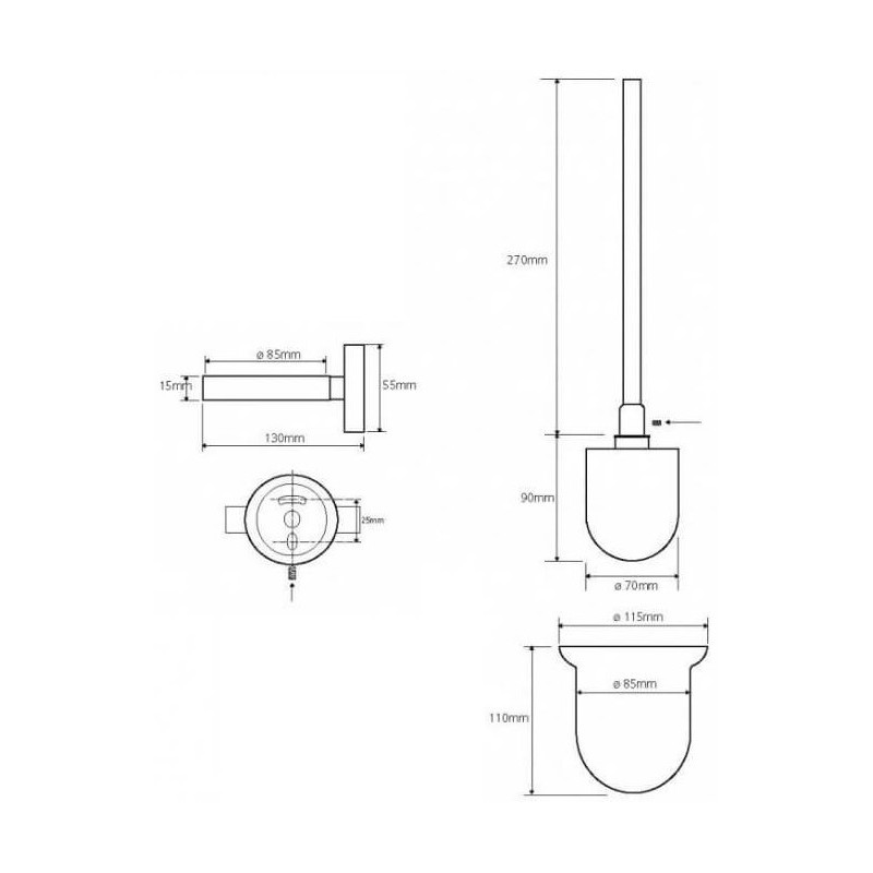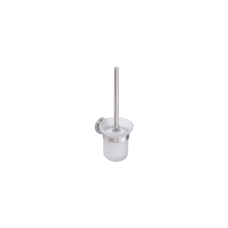 WC šepečio laikiklis, Pakabinamas, Stiklinis, Su baltos spalvos šepečiu, Matmenys(PxAxG) 115x360x130mm, Nerūdijančio poliruoto plieno šepečio kotas, 2 metų garantija