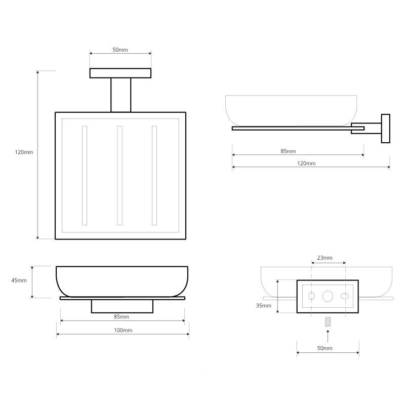 Stiklinė muilinė Bemeta Plaza. Matmenys - 100x45x130mm. Muilinė pagaminta iš stiklo, su žalvariniu, chromuotu laikikliu, dėl to tiks prie įvairaus vonios kambario interjero. Suteikiama 2 metų garantija.