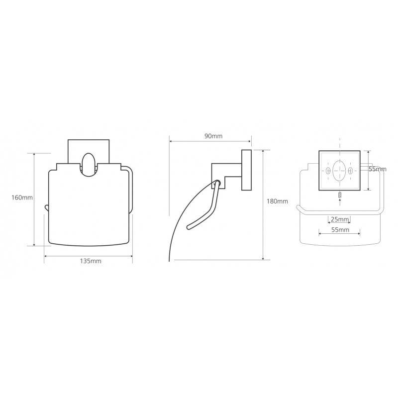 Tualetinio popieriaus laikiklis, Su dangteliu, Matmenys(PxAxG) 135x155x90mm, Žalvarinis, Chromuotas, 2 metų garantija
