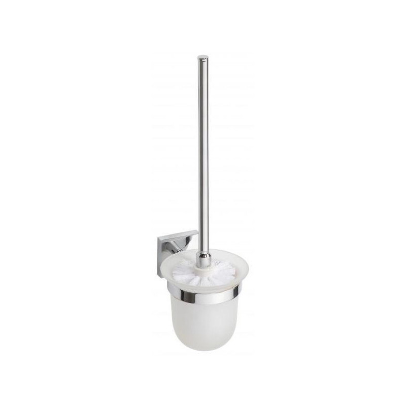 WC šepečio laikiklis, Pakabinamas, Stiklinis, Matmenys(PxAxG) 95x360x140mm, Su baltu šepečiu, Žalvarinis chromuotas šepečio kotas, 2 metų garantija