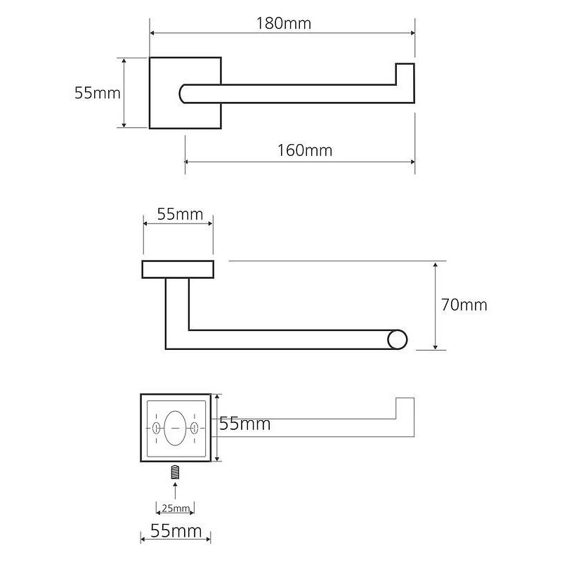 Tualetinio popieriaus laikiklis, Horizontalus, Kairė, Matmenys(PxAxG) 180x55x70mm, Žalvarinis, Chromuotas, 2 metų garantija