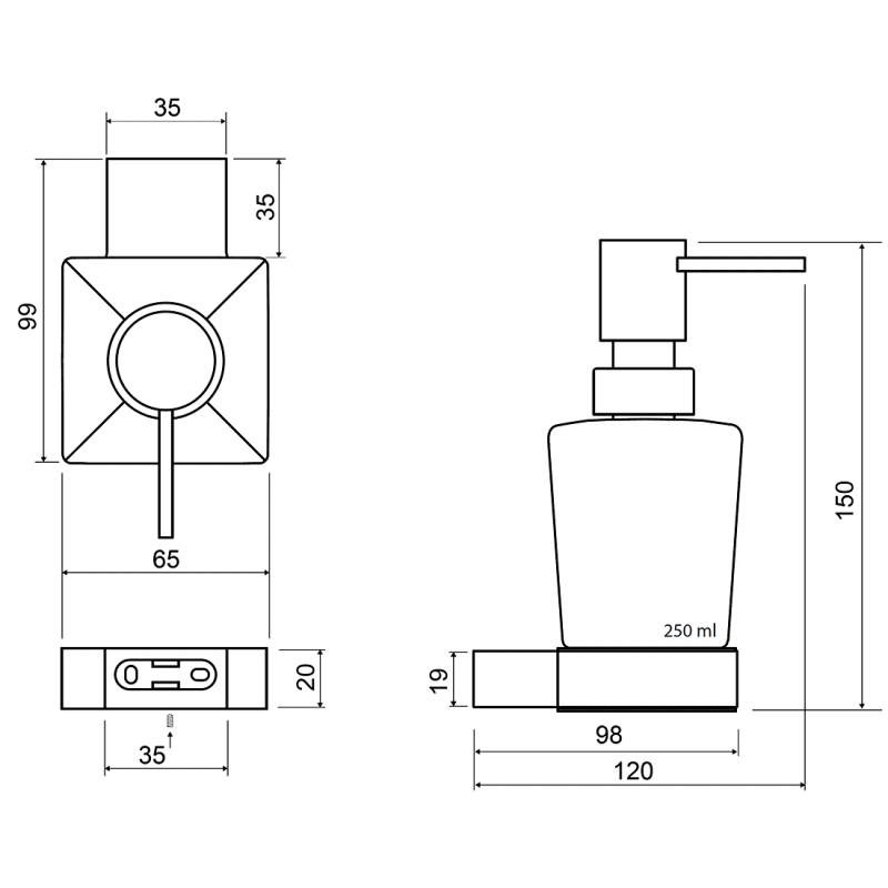 Muilo dozatorius Bemeta Via, pakabinamas, stiklinis, 250ml. Matmenys - 65x150x120mm. Dozatoriaus laikiklis pagamintas iš žalvario, chromuotas. Suteikiama 2 metų garantija.