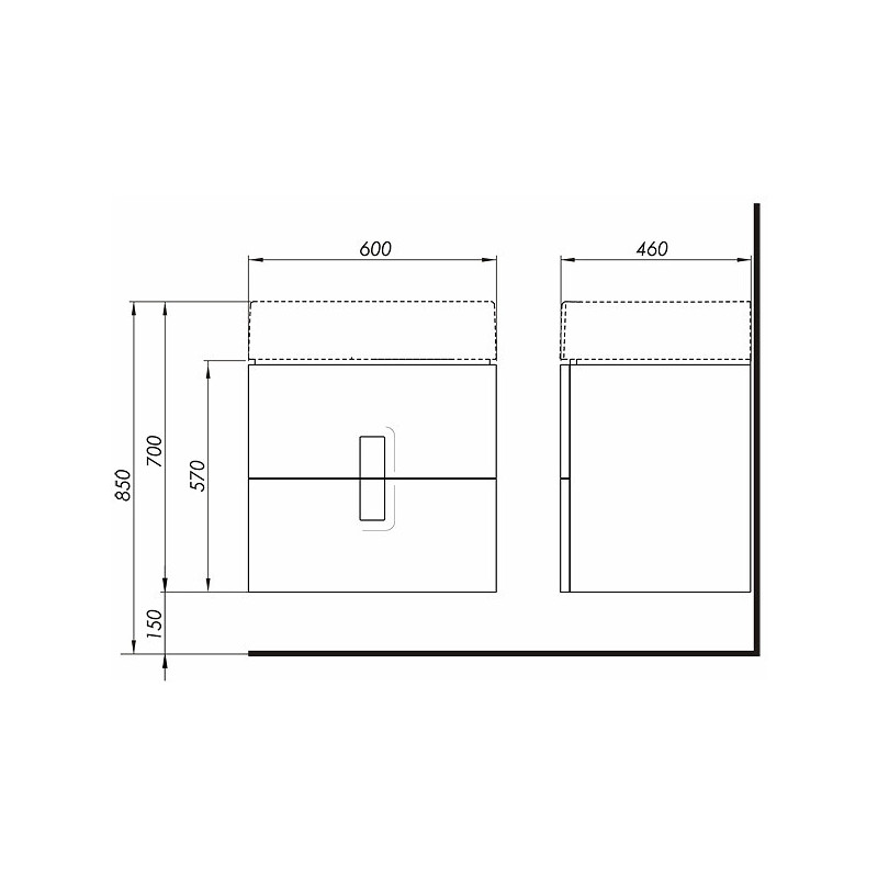 Spintelė praustuvui, Matmenys 60x57x46cm, Matinės juodos spalvos, Su dviem stalčiais, 2 metų garantija
