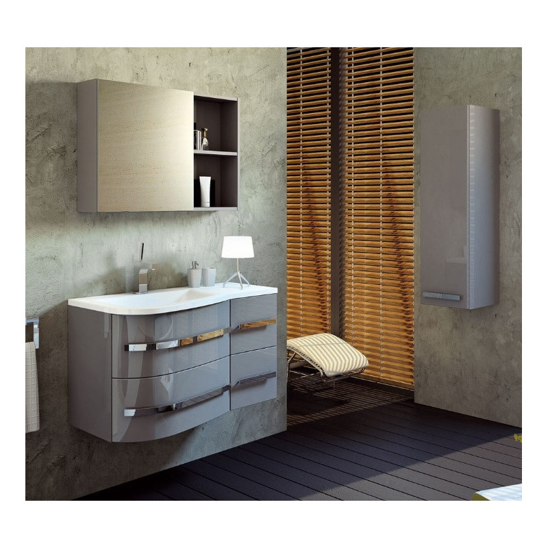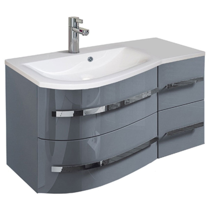 Vonios spintelė (praustuvas perkamas atskirai), Matmenys 90x44x50cm, Pilkos spalvos, Su 4 švelniai užsidarančiais stalčiais, Kairysis variantas, 2 metų garantija