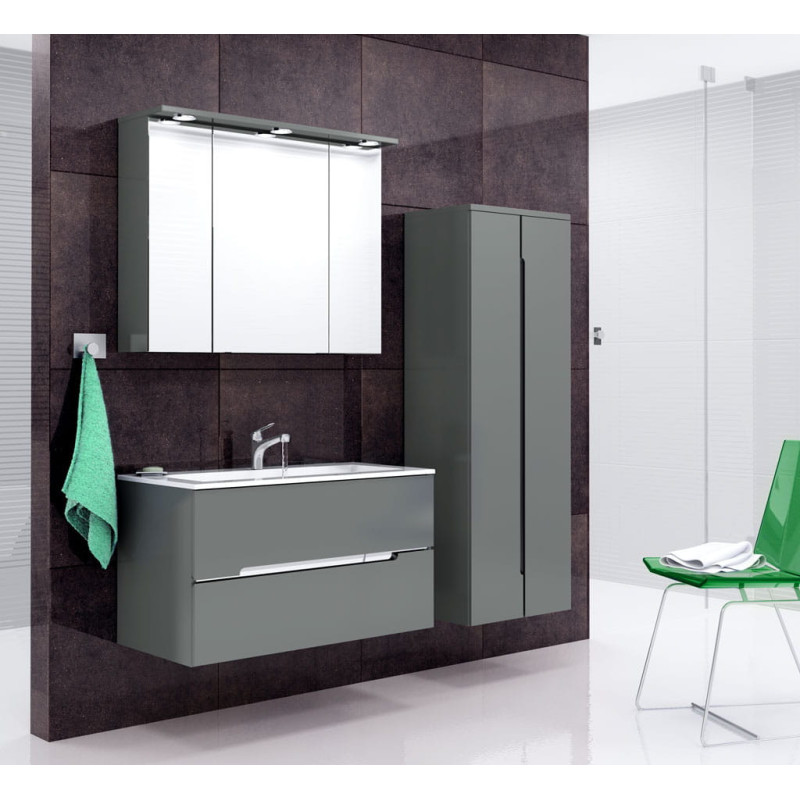 Vonios spintelė, Matmenys 90x72x14cm, Pilkos matinės spalvos, Su veidrodžiu, Su LED apšvietimu, 2 metų garantija