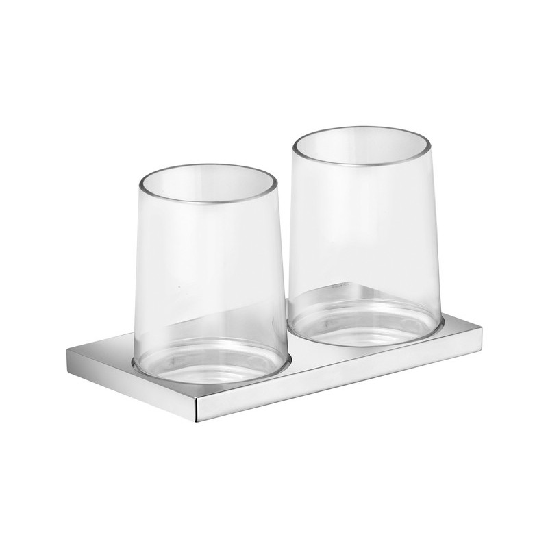 Stiklinės Keuco Edition 11, su laikikliu. Matmenys - 182x114x105mm. Laikiklis chromuotas, dėl to tiks prie įvairaus vonios kambario interjero. Suteikiama 2 metų garantija.