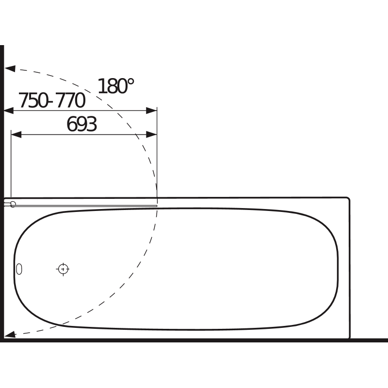 Vonios sienelė Jika Cubito Pure 75x140cm, 1 dalies, dešinė