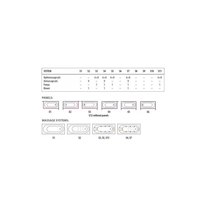 Vonia Balteco Modul 179x80 cm, be apdailos E24, su masažu