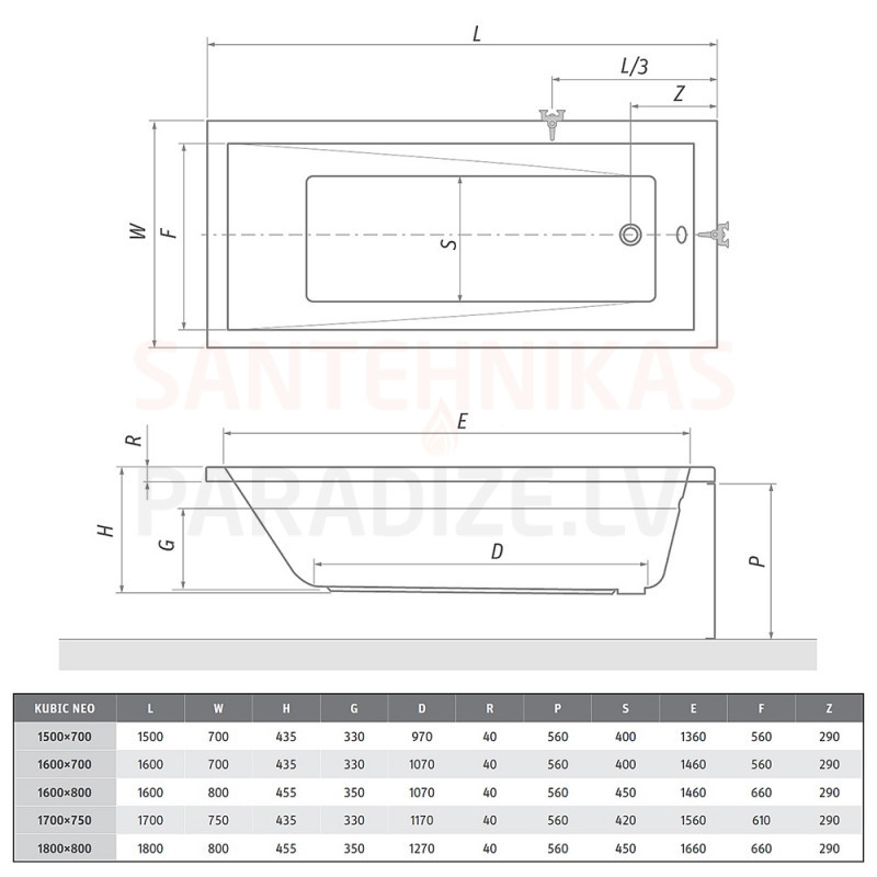 Akrilinė stačiakampė vonia Roth Kubic Neo 170x75 cm, baltos spalvos. Vonia Roth Kubic Neo derinsis prie įvairaus vonios kambario interjero. Vonios paviršius yra blizgus ir lengvai valomas, todėl galėsite mėgautis švaria vonia, neskirdami daug dėmesio jos priežiūrai. Akrilinė vonia Roth Kubic Neo ilgai išlaiko šiltą vandenį bei yra atspari cheminėms priemonėms, todėl galite būti tikri, jog vonia tarnaus itin ilgai. Maksimalus vandens tūris - 230 l. Lengvesniam montavimui ir reguliavimui rekomenduojama įsigyti kojelių komplektą su tvirtinimo elementais prie sienos (Roth 5139300). Suteikiama 10 metų garantija.