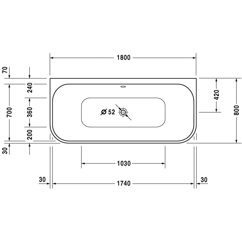 Akrilinė stačiakampė vonia Duravit Happy D.2 180x80 cm. Baltos spalvos vonia su 2 užapvalintais kampais Duravit Happy D.2 180x80 cm derinsis prie įvairaus vonios kambario interjero. Akrilinė vonia Duravit Happy D.2 180x80 cm yra iš sanitarinio akrilo, ilgai išlaiko šiltą vandenį bei yra atspari cheminėms medžiagoms, todėl galite būti tikri, jog vonia tarnaus itin ilgai. Vonia yra su panele ir kojomis komplekte. Suteikiama 2 metų garantija
