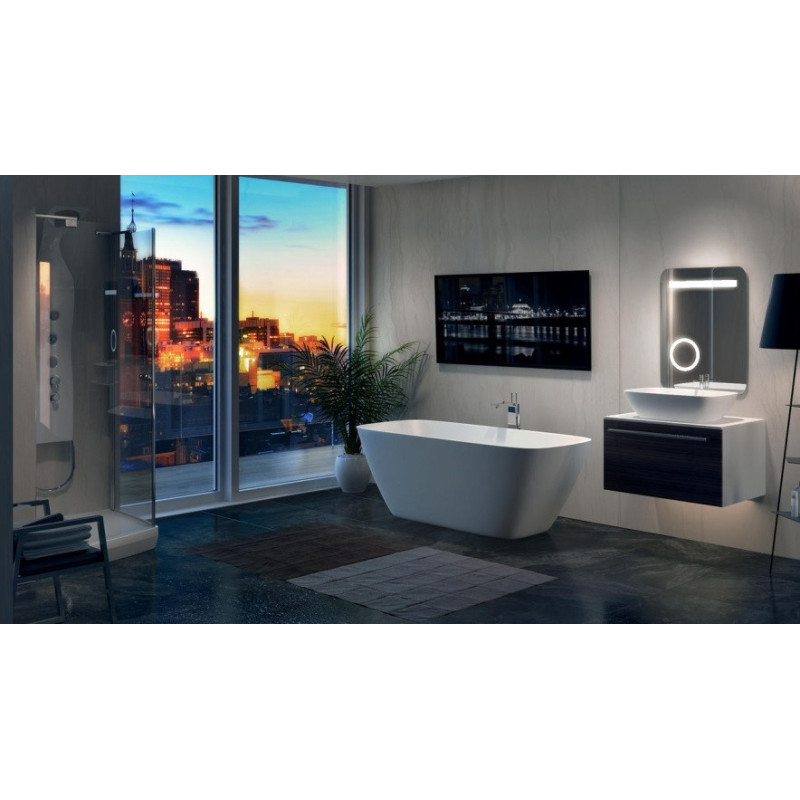Akmens masės vonia, Ovali, Su sienine jungtimi (CW) ir uždanga, Matmenys - 174x79x63 cm, Masyvus ir tvirtas korpusas, Maks. vandens tūris - 260 l, Rėmas su reguliuojamo aukščio kojelėmis, Išleidimo dangtelis, Avarinio persipylimo anga, 5 metų garantija