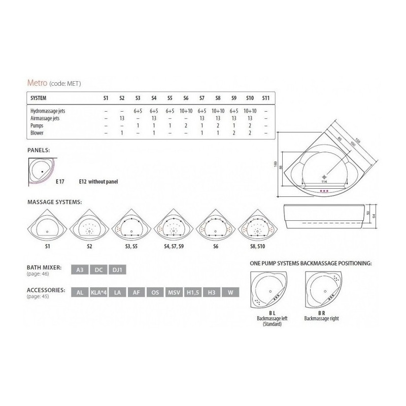 Masažo sistema Combi S4 leis mėgautis aukštu komforto lygiu maudantis vonioje. Oro masažas vyksta per vonios dugne sumontuotus purkštukus. Vandens masažas atliekamas vonios Balteco Metro šonuose esančiais purkštukais. Masažo stiprumą galima reguliuoti ant vonios krašto įtaisytomis oro sklendėmis. Sistemoje įrengtas atskirai valdomas, reguliuojamo intensyvumo nugaros ir kojų masažas. Suteikiama 5 metų garantija.