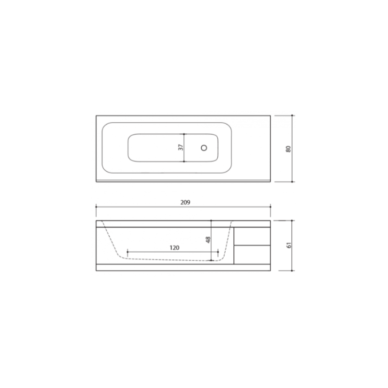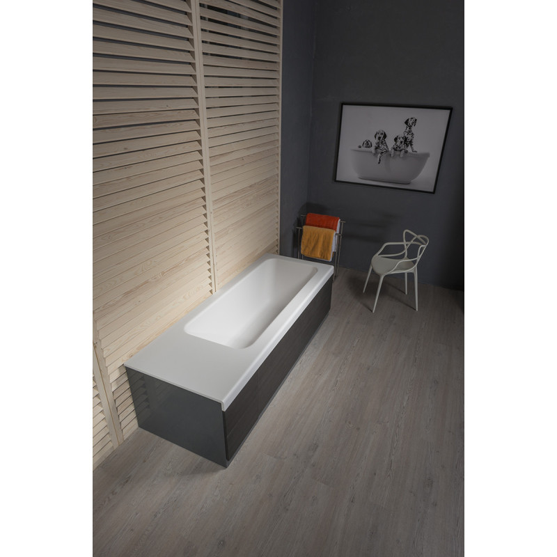 Akmens masės vonia, Stačiakampė, Su MDF galiniu ir priekiniu skydeliu, Matmenys - 209x80x61 cm, Masyvus ir tvirtas korpusas, Maks. vandens tūris - 260 l, Rėmas su reguliuojamo aukščio kojelėmis, Išleidimo dangtelis, Avarinio persipylimo anga
