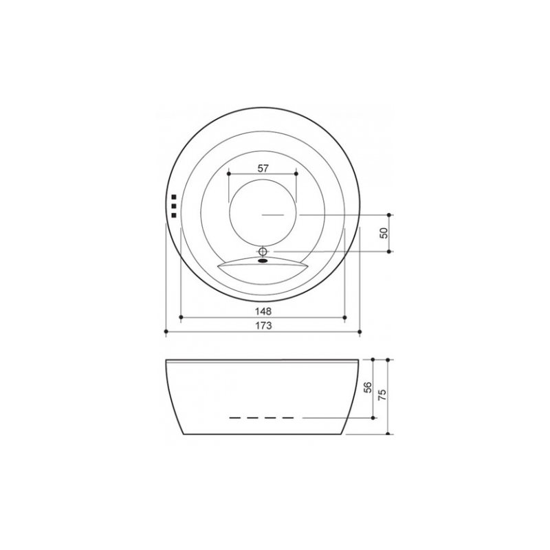| Vonios forma | Apvali |
