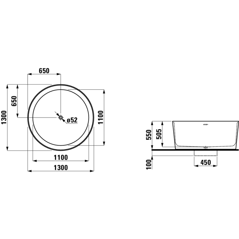 Vonia Laufen Val 130x130 cm, apvali, laisvai statoma