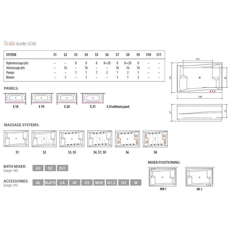 Akrilinė stačiakampė vonia Balteco Scala 179x120 cm, su apdaila (E19). Vonia yra su masažo sistema (Combi Lux Plus S8). Balteco Panel+ šoninių uždangų sprendimo privalumai: L formos akrilinės uždangos yra be kampinių jungčių, jų kraštai dailiai užlenkti (nėra technologinių pjūvio pėdsakų), o taip pat naudojamos bevaržtės magnetinės jungtys, todėl uždangos yra visiškai vientisos. Tai, voniai Balteco Scala 179x120 cm, suteikia išskirtini dizainą, todėl ji derinsis prie įvairaus vonios kambario interjero.
