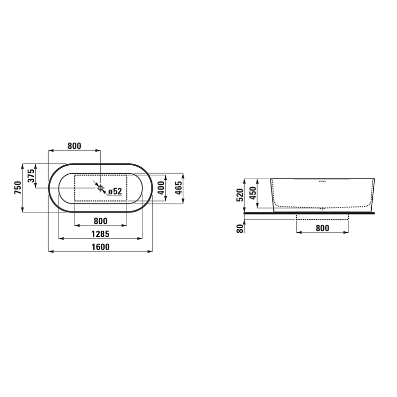 Vonia Laufen Val 160x75 cm, ovali, laisvai statoma